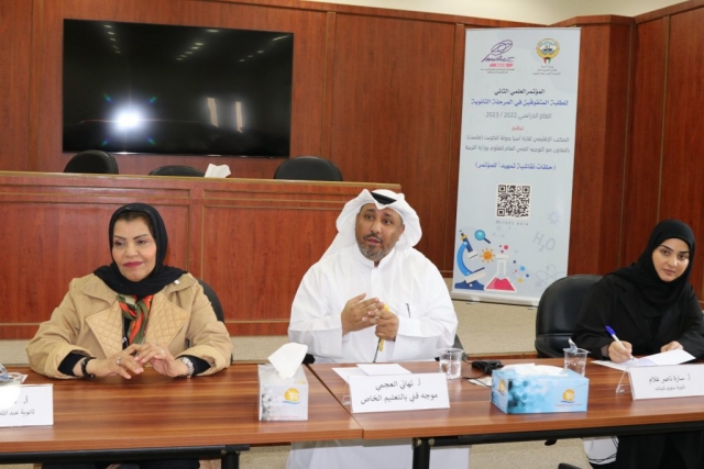 جاء ذلك بمناسبة انطلاق الاستعدادات لعقد “المؤتمر العلمي الثاني للطلاب المتفوقين” للعام الدراسي 2022 / 2023 من خلال إقامة حلقات النقاش للطلاب المتفوقين وورش عمل ومحاضرات لتعزيز التفوق العلمي والابداعي وتنمية ثقافة البحث العلمي” تحت شعار (نحو المعالي ارتقي بتفوقي) وسيعقد المؤتمر في 3 مايو 2023 وبمشاركة 96 طالب وطالبة من الصف الحادي عشر علمي المتفوقين في المواد العلمية (الكيمياء – الفيزياء – الأحياء – الجيولوجيا) من جميع محافظات الكويت.