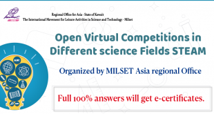 📢 Register and participate in the Open Virtual Competitions in Different science Fields “STEAM” Organized by MILSET Asia regional Office Full 100% answers will get e-certificates. ____________ Competition 7 ‘What do you know about MILSET?’ To participate press https://forms.gle/ztzoifyiFCsj9JEF8 🔴 Competition guidelines: 1-Registration is open on 14th July 2021 2-Deadline …