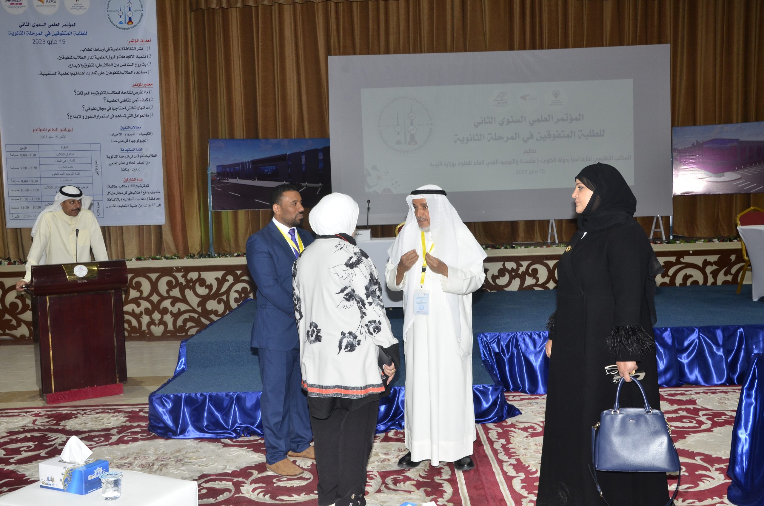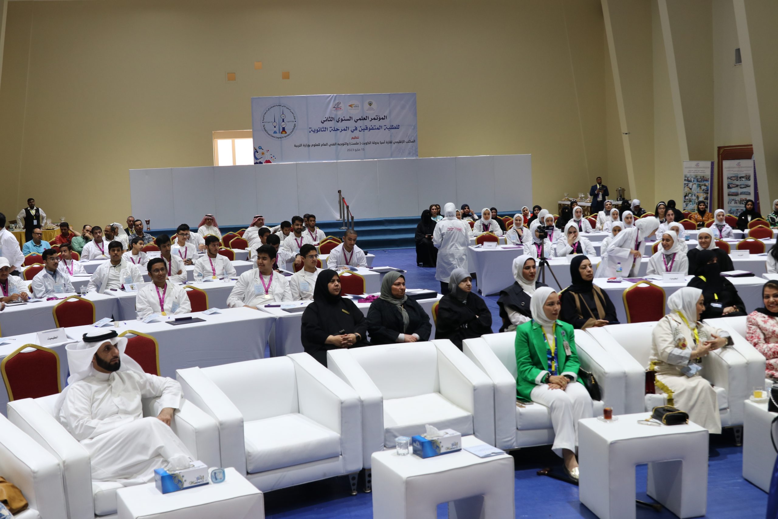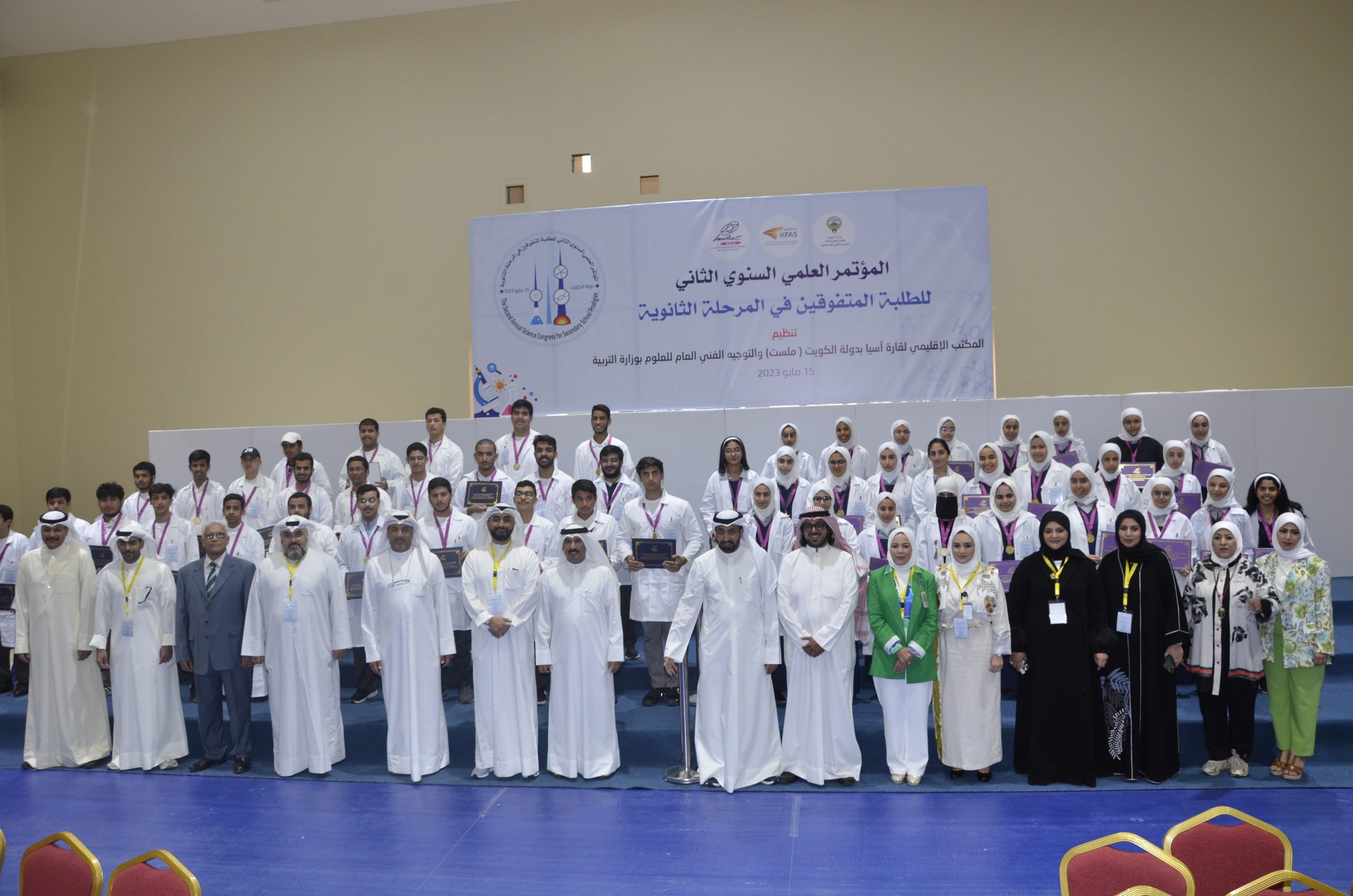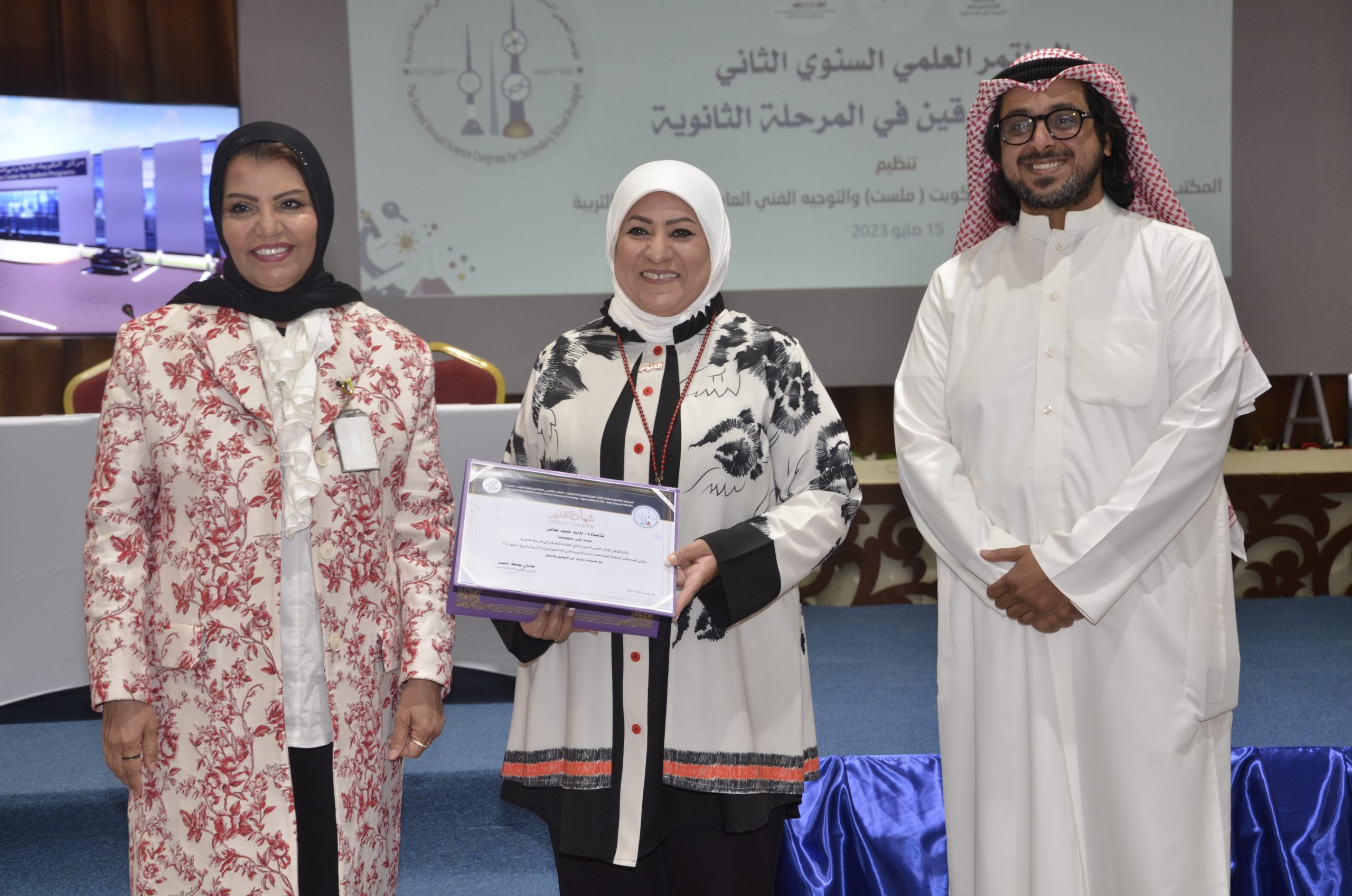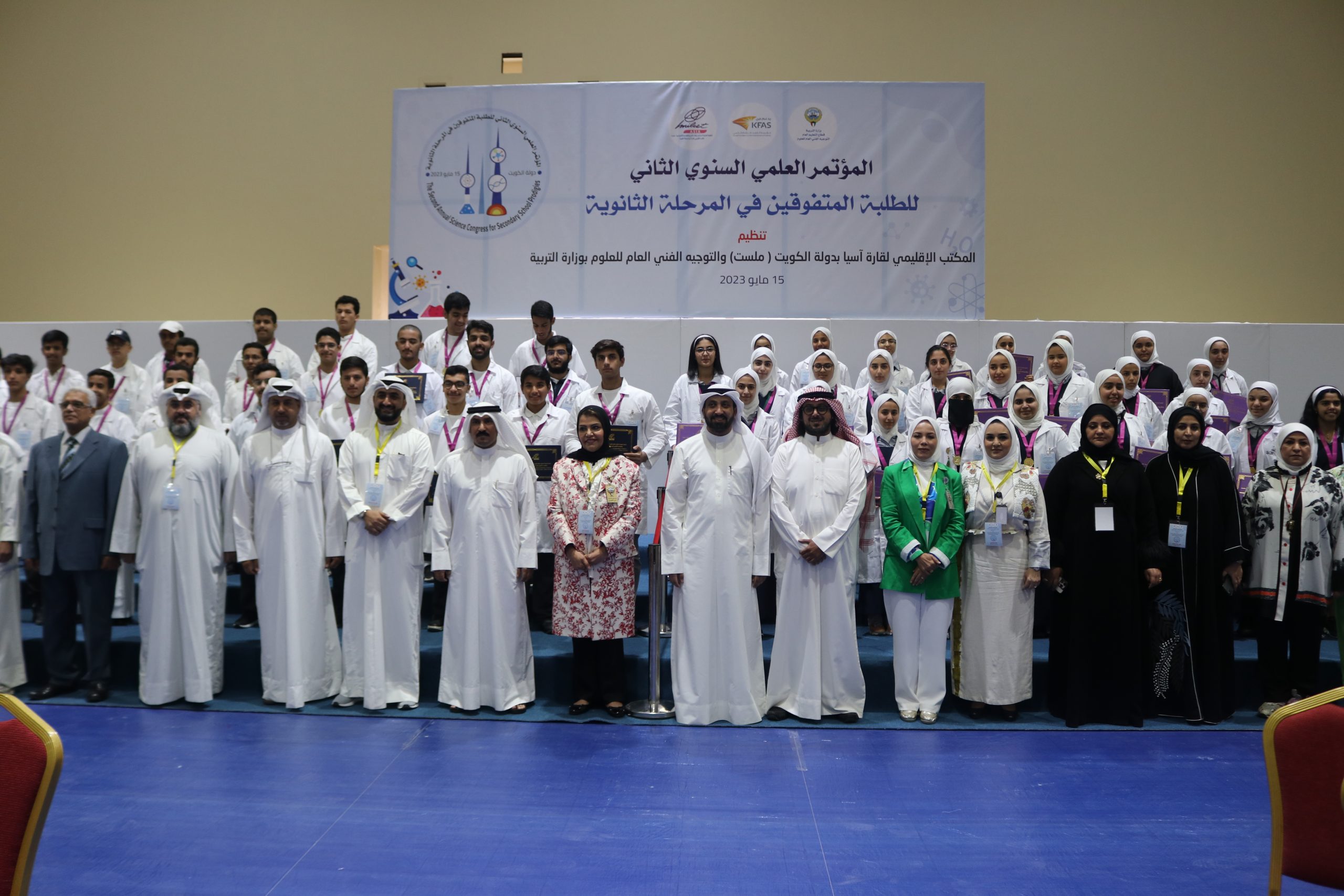 The Office of the World Organization for Science and Technology (MISET Asia) affirmed its support and encouragement for Kuwaiti students, expressing its interest specially in the segment of the outstanding ones and its care to achieve competition amongst them in the field of creative excellence. this came in the words of M. Adnan Al -Mir, Vice President of the World Organization (MIlSET) and the head of its office in Asia, at the conclusion of the activities of The Second Annual Scientific Conference for Outstanding Students in the secondary stage organized by the regional office “MILSET Asia” in cooperation with the general supervision of Science at the Ministry of Education and with the support of the Kuwait Foundation for Scientific Progress and sponsored by the Assistant Undersecretary For public education, Osama Al -Sultan, in the presence of Dr. Ghanem Al -Suleimani, Assistant Undersecretary for the Educational Development Sector and Activities.