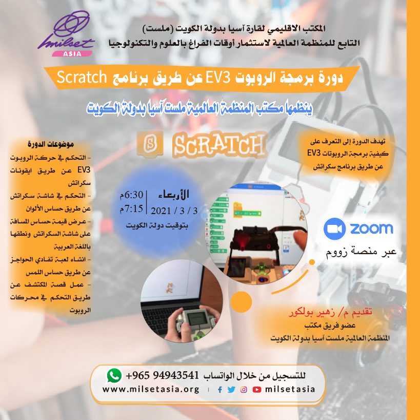 وتهدف الدورة إلى التعرف على كيفية برمجة الروبوتات EV3 عن طريق برنامج سكراتش.
